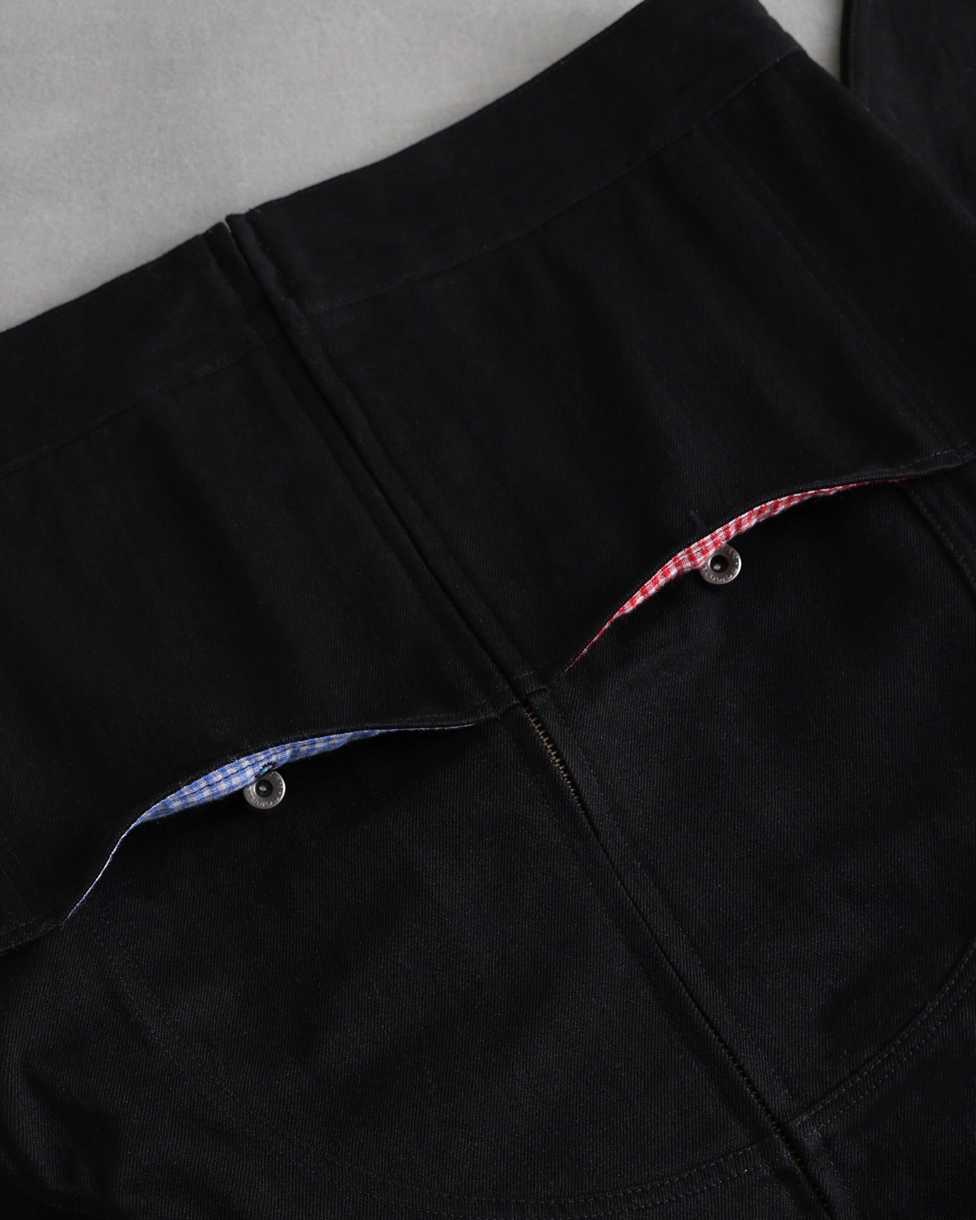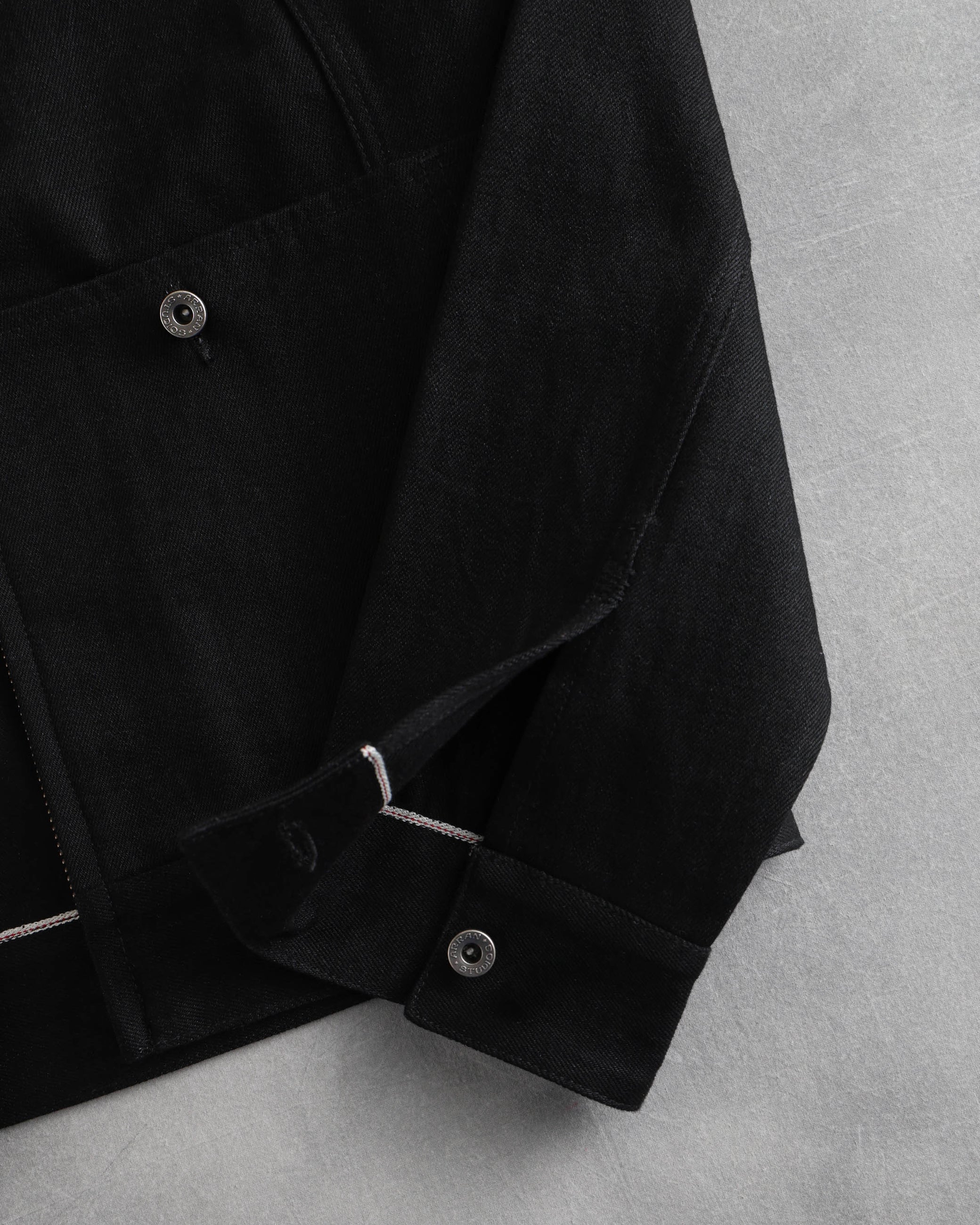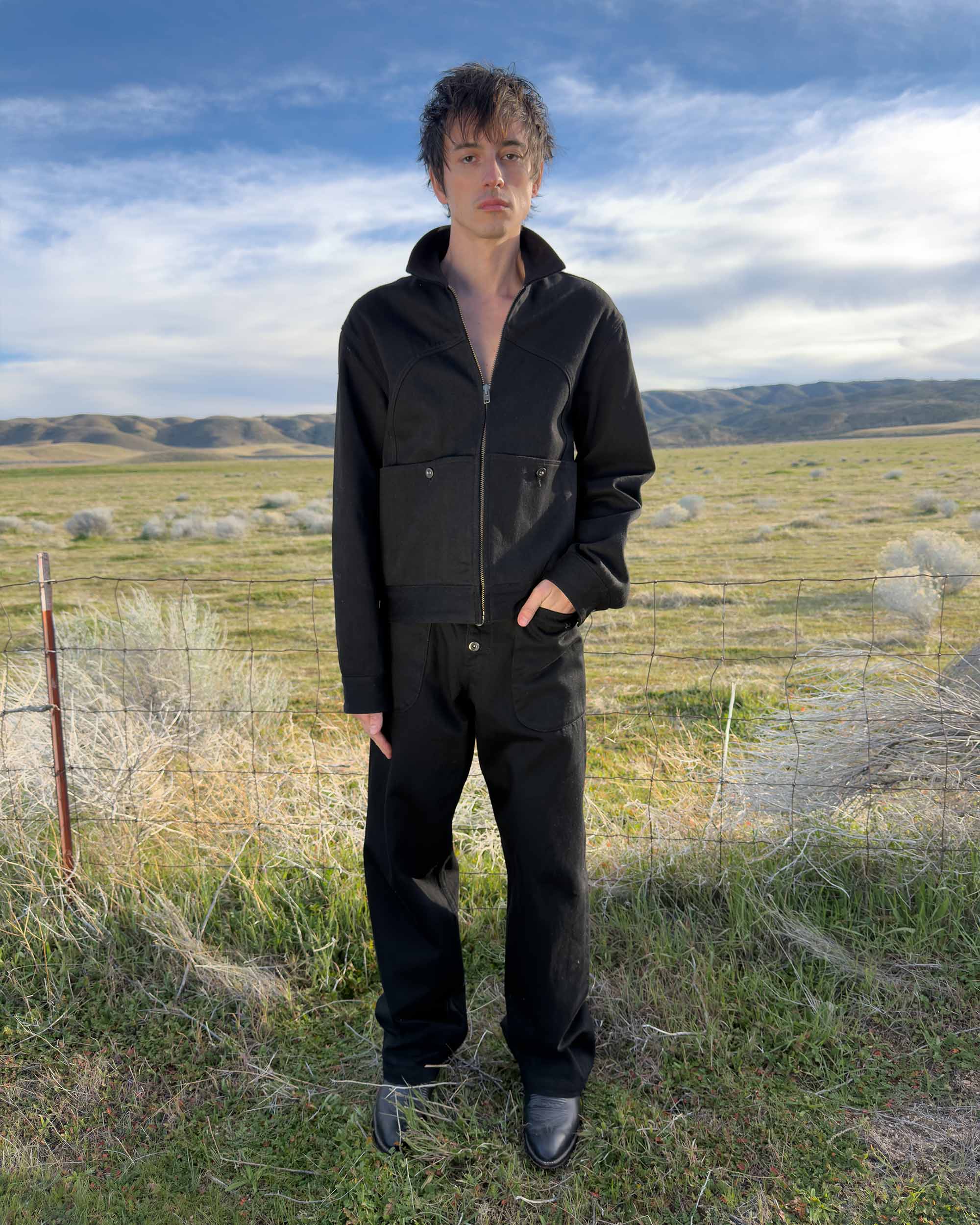 Inspired by vintage ranch workwear and classic overalls, the Rancher Jacket reinterprets utility through a refined silhouette. Designed with oversized wraparound pockets and constructed from heavyweight 14.7oz black selvedge denim.