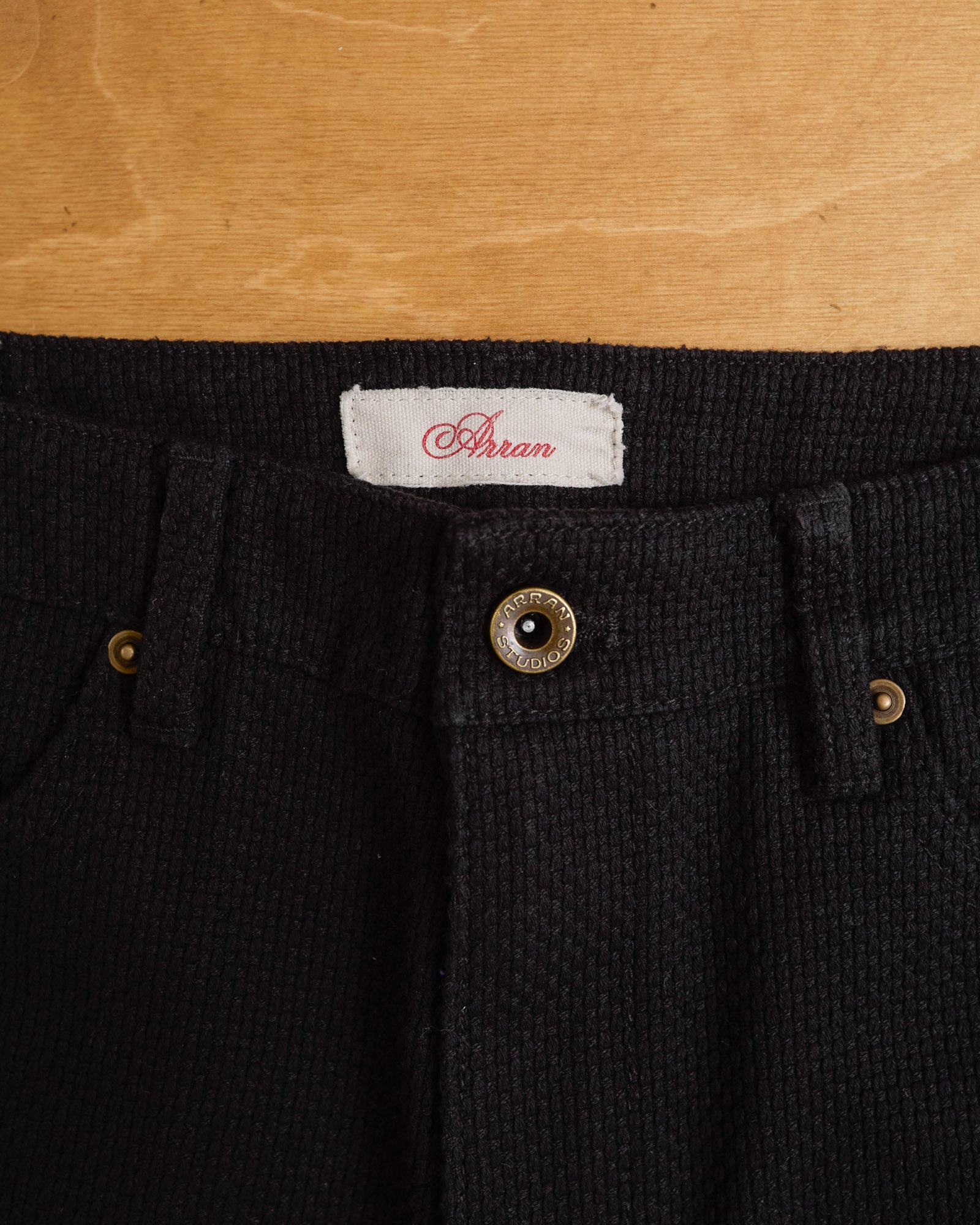 A relaxed workwear trouser cut from heavyweight 100% cotton Sashiori fabric. The raised rice-grain weave offers a structured feel with natural breathability, combining durability and ease of movement. Rear flap pockets with multicolored button closures, and heavyweight hardware throughout.